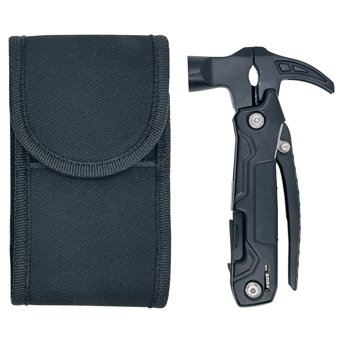 All-in-One Multi-tool hammer is the ultimate Best Buddy for everyday tasks. This multipurpose tool combines a mini hammer, pliers, nail puller, wire cutter, saw blade, knife, screwdrivers and bottle opener. Equipped with two safety locks, this hammer multi-tool ensures secure use of the upper hammerhead, camping knife and saw blade. A protective nylon sheath features a hook-and-loop closure and belt loop for secure carry and easy access. Perfect for outdoor activities or home improvement tasks. Complies with Prop 65. 3.25″ L x 1.25″ W x 5.75″ H
