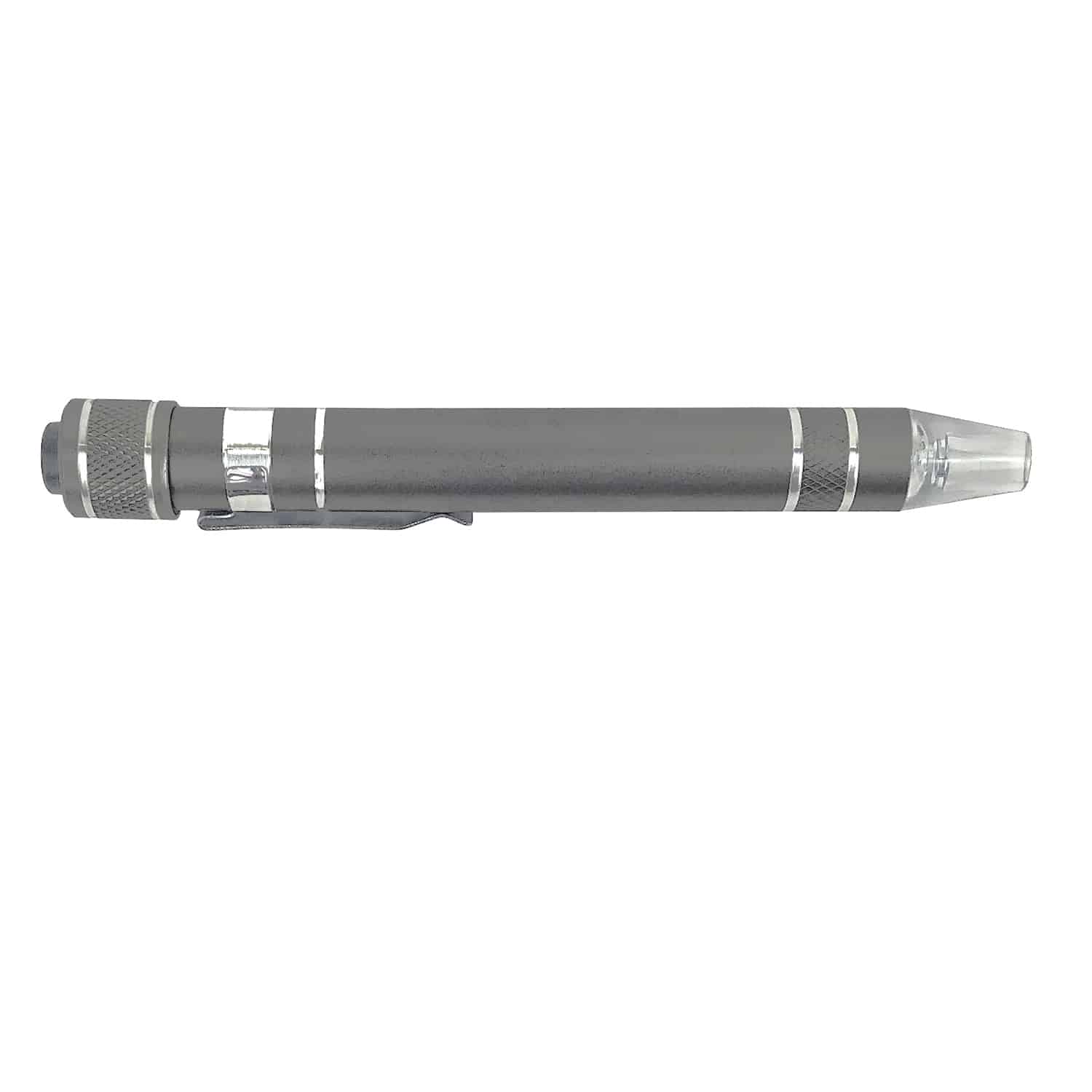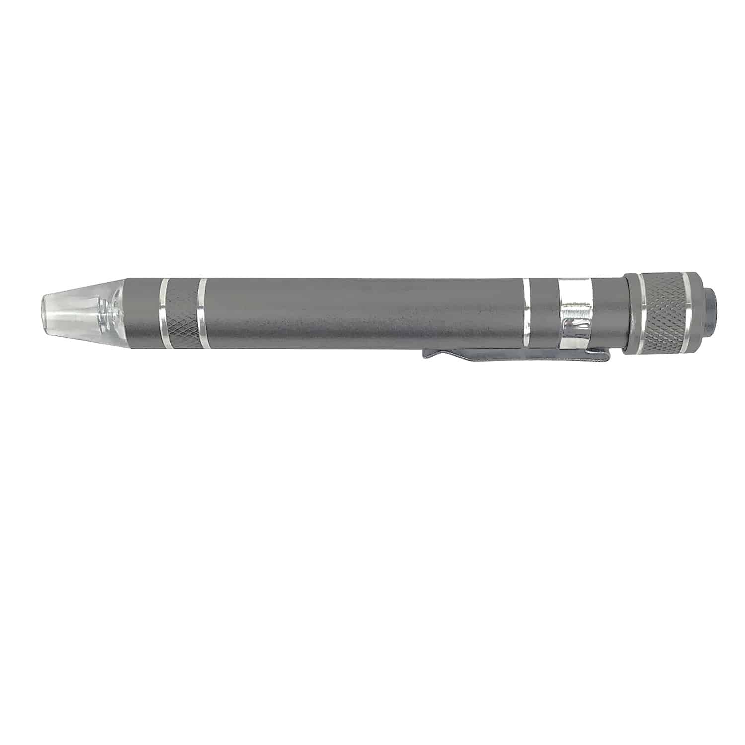 This pen shaped tool kit features a bright LED light in the tip and 6 bits for detailed repairs. 5.125″ W x 0.625″ H x 0.5″ D