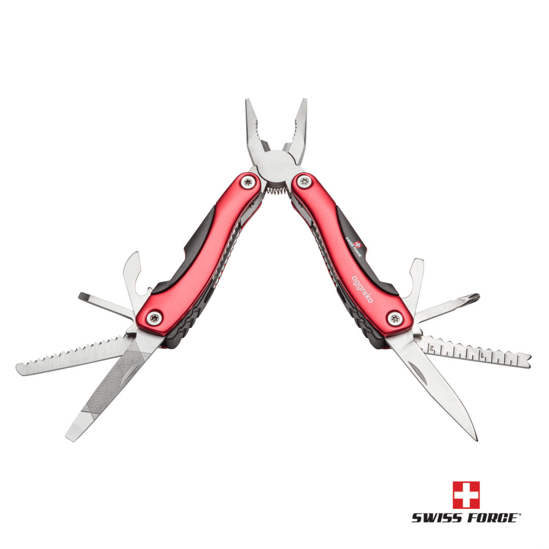 The ultimate utility tool for the handyman- 13 function multi-tool- Superior stainless steel tools- Folds up for convenience and easy portable storage- Includes belt loop nylon pouch- Packaged in a stylish Swiss Force EVA insert gift box. 4.0″ W x 0.75″ H x 1.75″ D